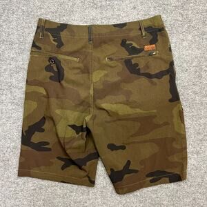 Dixxon Shorts Mens 30 Green Camouflage Stretch Logo Pockets Mid Rise Zip Fly