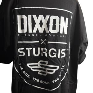 Dixxon Sturgis The Ride The Roar The Rally Tee, Black, Size 2XL, NWOT. Own a piece of biker history with this Dixxon Flannel Company x Sturgis Rally collaboration tee - a limited edition release celebrating the world famous motorcycle rally in Sturgis, South Dakota. Made from soft black cotton with bold white logo prints on the front chest and back, celebrating the Sturgis spirit in clean, timeless style. 100% cotton, crew neckline, short sleeves, authentic Dixxon quality. Perfect for collectors, riders and streetwear enthusiasts. New without tags. Made in the USA.