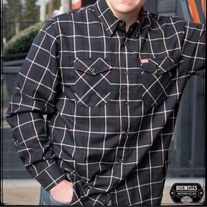 Dixxon flannel Company Boswells 1950 Harley Davison, black/red plaid size L, NWT