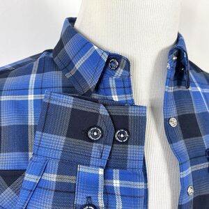 Dixxon x Grunt Style Medium Defender Flannel Shirt Blue White Plaid Snap Front