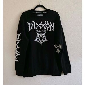 The Dixxon Flannel Crewneck Sweater Fleece in Men's XL is a stylish and versatile addition to any wardrobe. This black long sleeve sweater features a pullover style with a crew neck neckline and is made from a comfortable knit fabric blend of polyester and cotton. The graphic print accents and collarless design add a touch of sophistication, making it perfect for a variety of seasons and occasions. With its biker, outdoor, and gothic themes, this sweatshirt offers a unique and edgy look for the modern man.