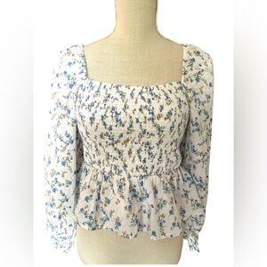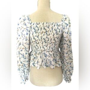 Dizzy Floral Smocked Blouse - White and Blue- M