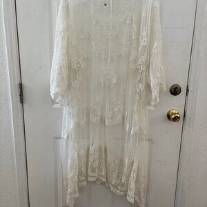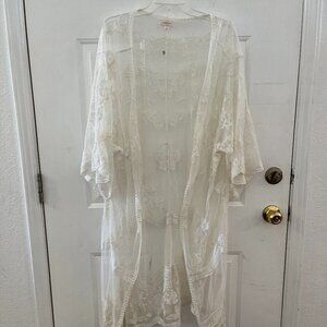 Dizzy Gal Woman's Plus-Size Ivory Floral Lace Open-Front Kimono Sz 1x