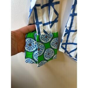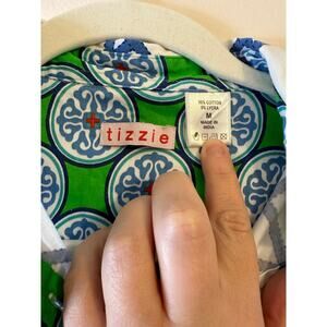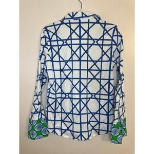 Dizzy Lizzie Tizzie Womens Long Sleeve Button Up Blue Green Preppy Shirt Medium
