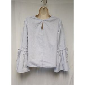 Dizzy Lizzy Bell Sleeve Embroidery Floral Blue Striped Top Size XS