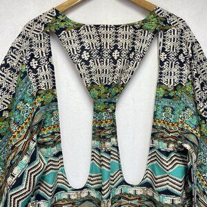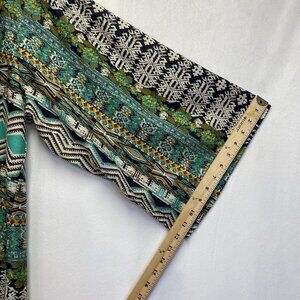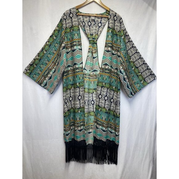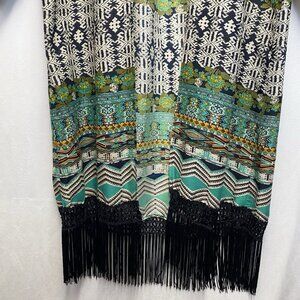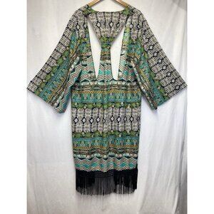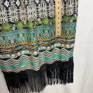 Dizzy Lizzy Bohemian Aztec Fringe Hem Open Front Cardigan Women Small Multicolor