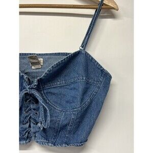 Dizzy Lizzy Large Denim Jean Lace Up Corset Crop Top Size Large