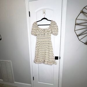 Dizzy Lizzy Shirred Floral Print Mini Dress Size M Cotton White Yellow