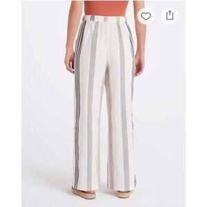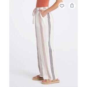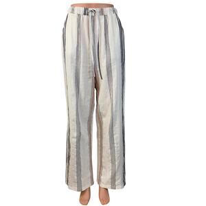 Dizzy Lizzy Wide Leg Navy Cream Pink Stripe Pants Drawstring Waist Side Pockets