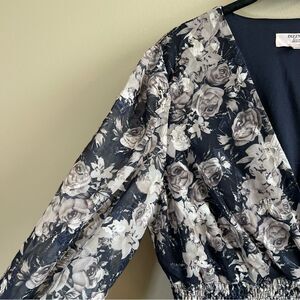 Dizzy Lizzy women’s gray floral long sleeve mini dress.