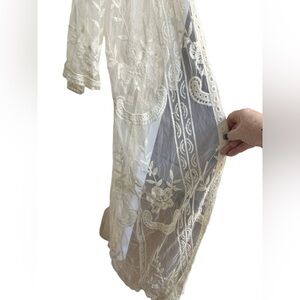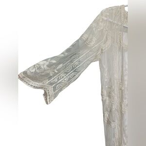 Dizzy Lizzy long mesh lace embroidered kimono off white. Size small.