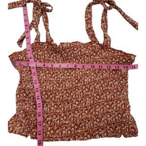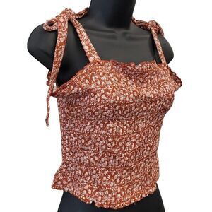 Dizzy Lizzy Smocked Crop Top Women's XL Rust Orange White Floral Tie-Straps NEW
