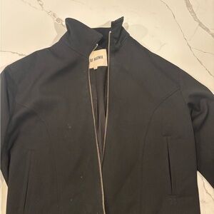 Stylish black bomber jacket by Djerf Avenue. Features a sleek design with a zip closure.