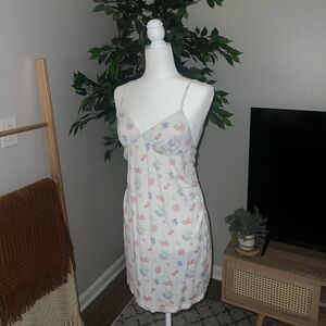 Charming slip dress with summer berries print. Features delicate straps and a soft fabric.