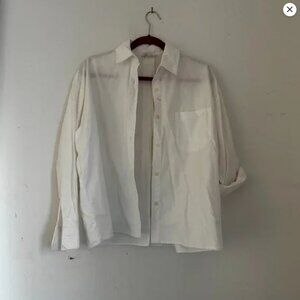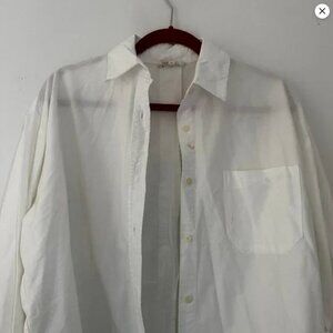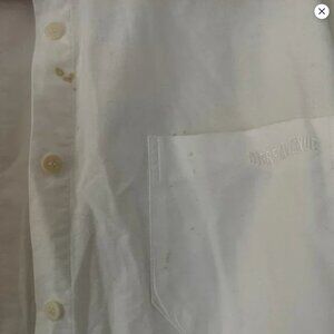 Size small, some stains on the front, please see pictures. I have not tried getting them out. Relisting since I was out of town when it first sold.