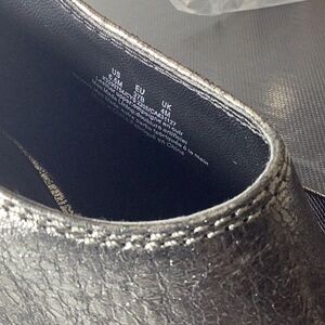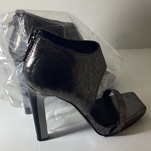 Dkny Black Gray Heels with Textured Straps and Metallic Heel