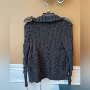 Dkny Black and Brown Cardigan with Faux Fur Trim Cable Knit Size M Sweater