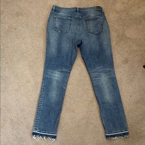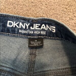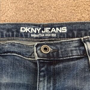 These Dkny jeans offer a chic style with a unique raw, frayed hem for a contemporary look. The blue denim is beautifully faded, providing a relaxed, lived-in vibe. Perfect for adding a modern edge to your everyday ensemble.