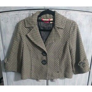 Dkny Cropped Wide Sleeve Button Jacket Medium Y2K Boho Classic Officey