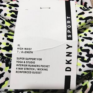 These brand new Dkny leggings showcase a vibrant multi-color palette, perfect for adding a pop of color to your wardrobe. Designed for both style and comfort, they offer a high waist sleek fit ideal for an active lifestyle. The modern design ensures a chic and versatile look for any occasion.