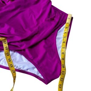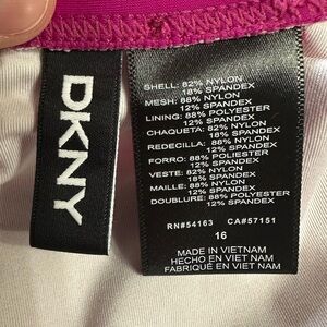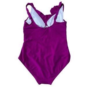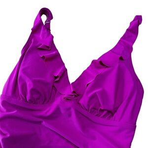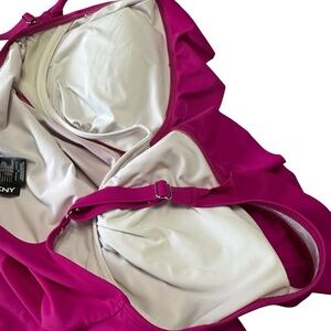 Dkny Ruffle Plunge Underwire Tummy Control One-Piece Swimsuit Dark Pink Sz 16