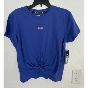 Dkny Sport Women's Metallic Bubble Logo Knot-Front T-Shirt Blue Tee