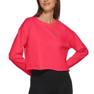Dkny Sport Women's Metallic Logo Cropped Sweatshirt shirt- Fiery Pink L