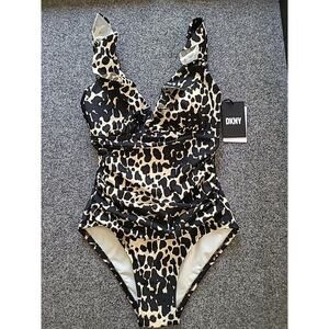 Dkny Women's COW Printed Underwire Tummy Control One-Piece Swimsuit Size 4 NWT