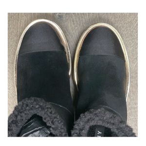 Suede/manmade upper; polyester faux-fur Lining; manmade sole