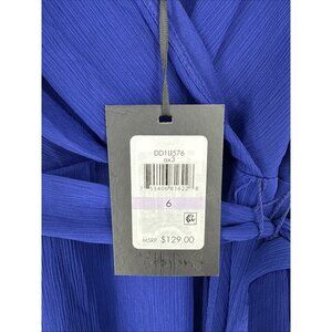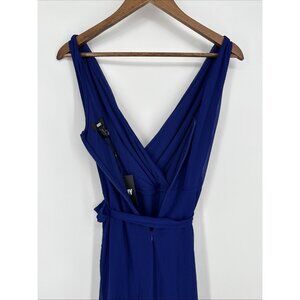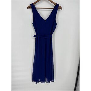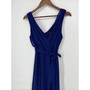 Dkny Womens Size 6 Blue Chiffon High-Low Sleeveless V-Neck Tie Waist Midi Dress