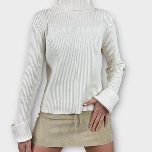 Dkny Y2K Women's White Ribbed Sweater Size XL