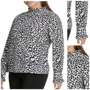 Dkny Animal Printed Ruffle-Neck Top size XL