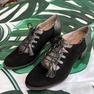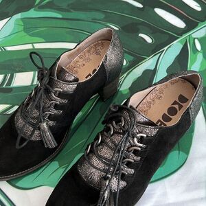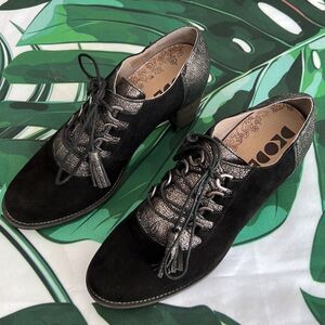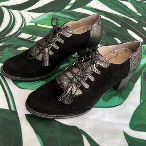 Dkode black suede, silver, metallic ankle booties excellent condition no damage features a heel height of 2 inches European size 39