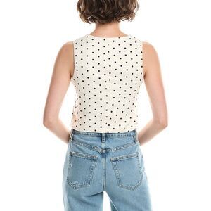 About the brand: Sustainably-made denim done right. Lizzie Linen Vest in polka dots with square neckline Approximately 18in from shoulder to hem Model is 5'9 and is wearing a size small. Measurements may vary slightly by size. Button front 100% linen Machine wash Imported