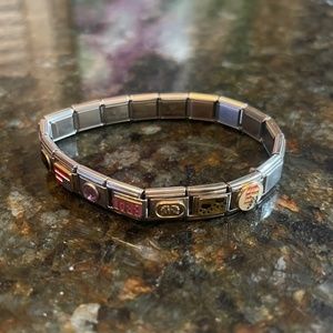 Dlinq Italian Charm Bracelet Set. Color: Gold/Silver, Red, Pink. Different charges, can be sold individually. 19 links.