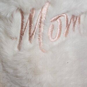Dluxe by Dearfoams Cream Plush Rubber Soled Super Mom in Pink Embroidery Memory Foam Slippers Size S 5-6.....Machine Washable and filled with Plush Poly and Memory Foam...Look so Warm and Comfy.....Brand New with Tags.....