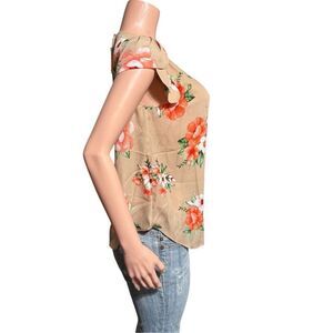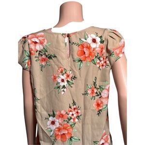 Nwot Tan floral print scoop neck short ruffle sleeves loose casual top 100% polyester