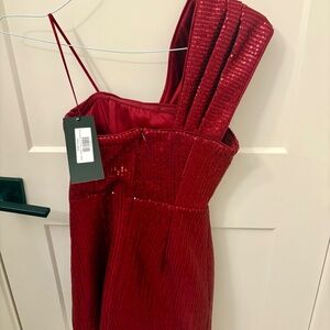 Do +Be Aralyn dress. NWT Never Worn . Red sequin , one shoulder, zipper back closure .