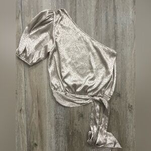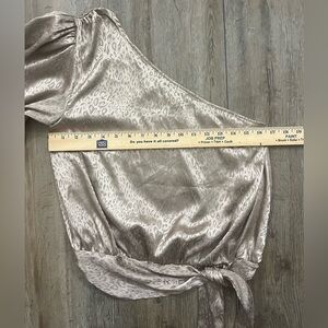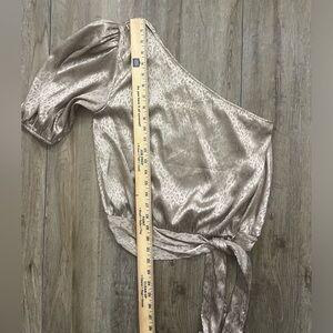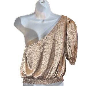 Do+ Be Metallic Gold Blouse One Shoulder Fierce Cheetah Shirt Tie Waist Size S