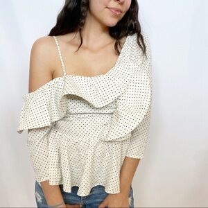 Do + Be Polka Dot One Shoulder Peplum Ruffle Top