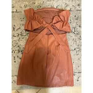 The Do + Be faux leather strapless dress in size small is designed for a party or cocktail occasion. It features a solid orange color, sleeveless style with a zip closure, and a short dress length. Made from a blend of polyester, faux leather, spandex, nylon, and rayon, this dress by Do + Be is perfect for the summer and spring seasons. The brand's attention to detail and quality materials ensure a stylish and comfortable fit for women looking to make a statement at any event.