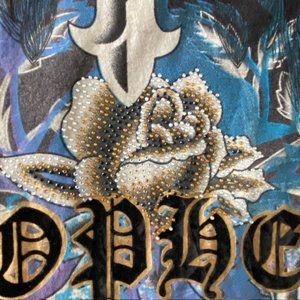Beaded flower (missing some rhinestones), other designs applied via heat press or fabric paint