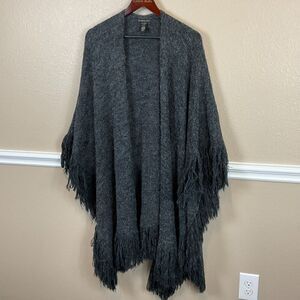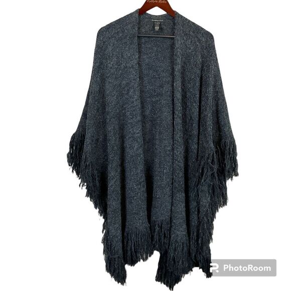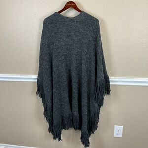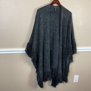 Do Everything In Love Gray Poncho OS Open Front Sweater Acrylic Warm Cozy Boho E3
