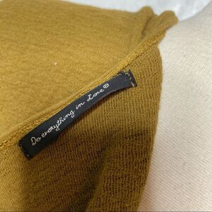 This cozy mustard yellow cardigan from Do Everything In Love is perfect for layering during cooler seasons. It features a stylish open front design and a ruffled hem for a touch of femininity. Made from 100% cotton, it is both comfortable and breathable. This cardigan is in great pre-owned condition with minimal signs of wear.