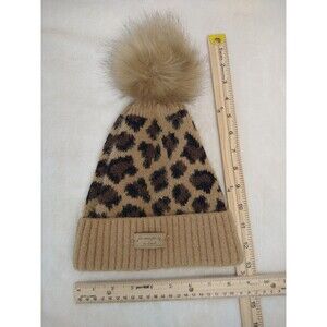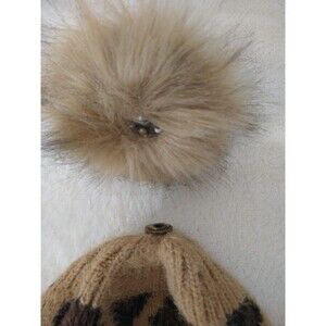 Do Everything in Love Cheetah Knit Hat with Big Snap Off Pom Ski Lodge Cabin