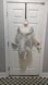Elegant knit poncho with a soft texture. Features a stylish cream and gray pattern. Perfect for layering and adding warmth.