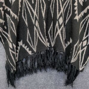 Do Everything in Love Women's Sweater Poncho Black One Size Knit Fringe