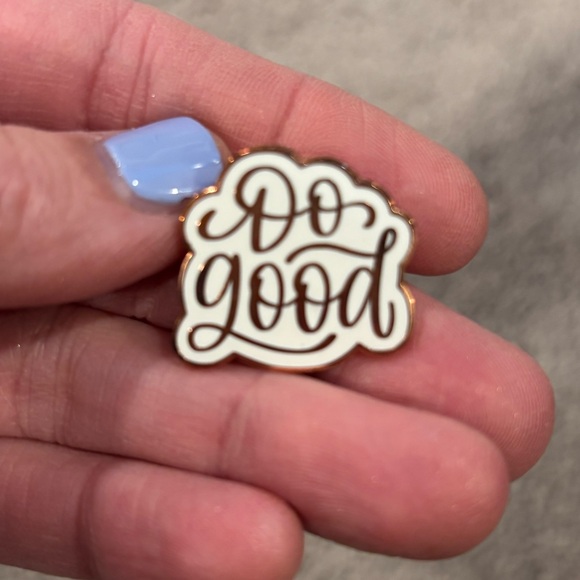 Stylish enamel pin with 'Do Good' design. Perfect for jackets or bags.