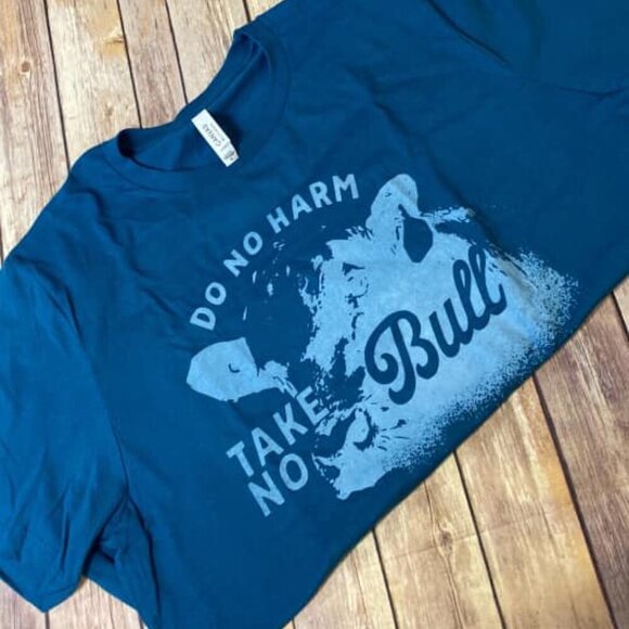 Do No Harm Take No Bull Graphic Tee Shirt XL Teal Blue Western Rodeo