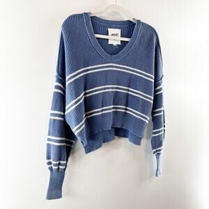 oversized boxy fit, long sleeves, ribbed, striped, sweater, scoop neckline, blue, white, coastal